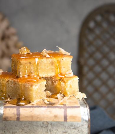 Die Creme üppig auf die Tarte streichen, diese in Stücke schneiden und servieren.