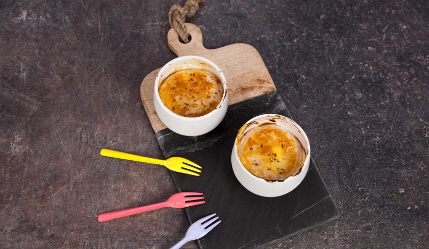 Gib die Tassen in den Backofen und backe sie im unteren Drittel (Einschubhöhe 2) 25-30 Minuten. Nimm sie heraus, lass sie kurz abkühlen und serviere sie lauwarm oder komplett abgekühlt.