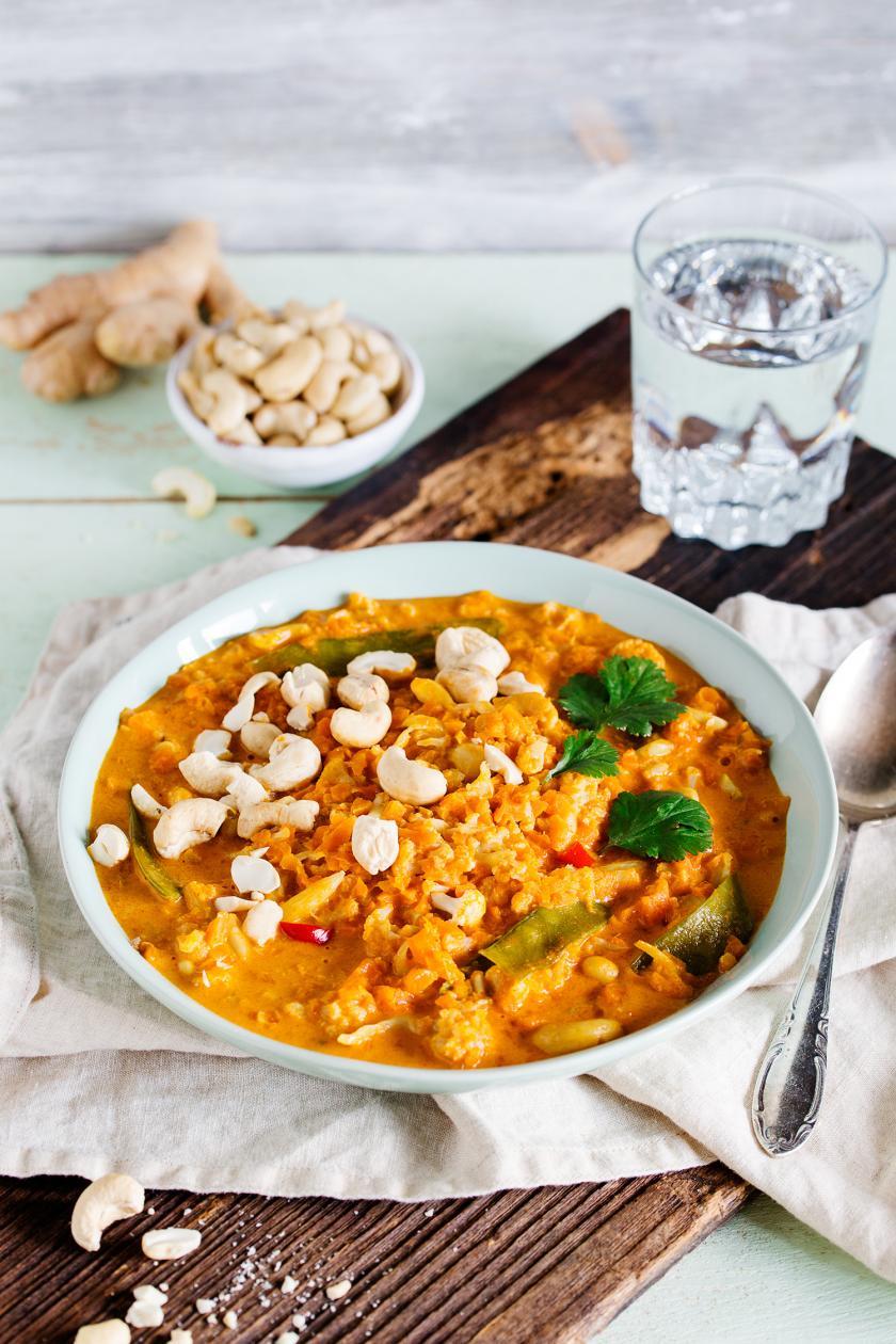 - Cashewsahne: Kerne über Nacht einweichen und im Verhältnis 1:2 mit Wasser pürieren.