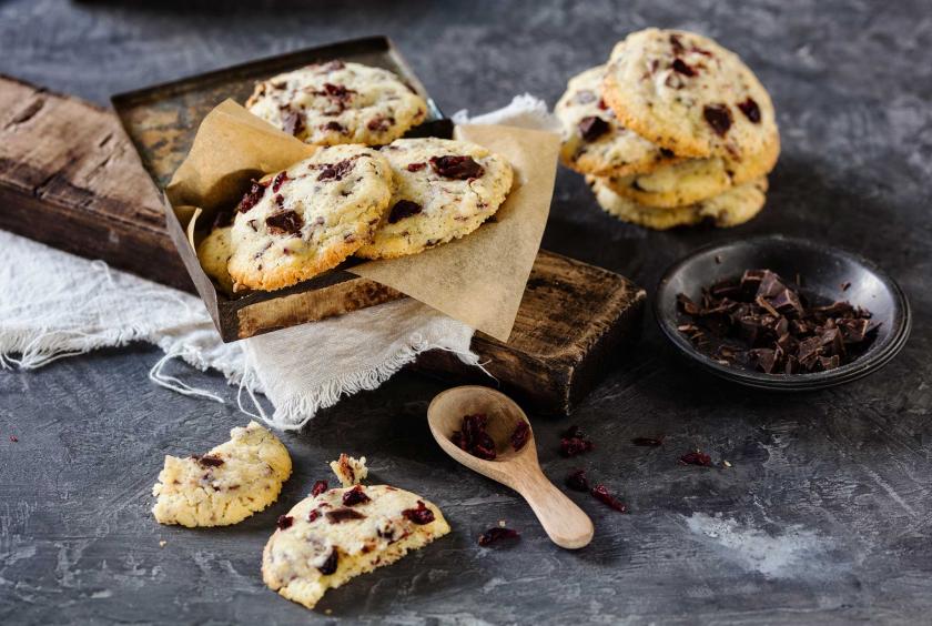 Hacke die Schokolade und die Cranberrys in mittelgroße Stücke.