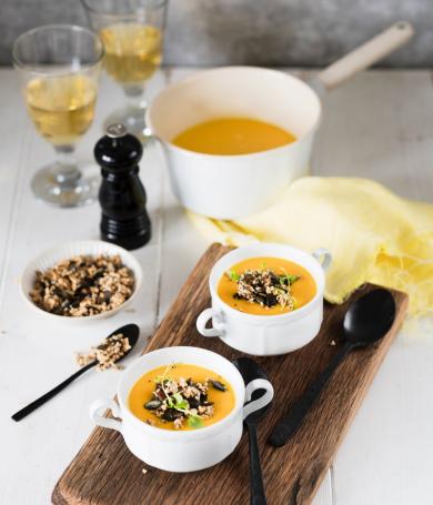 Karotten-Ingwer-Suppe mit Knusper-Topping