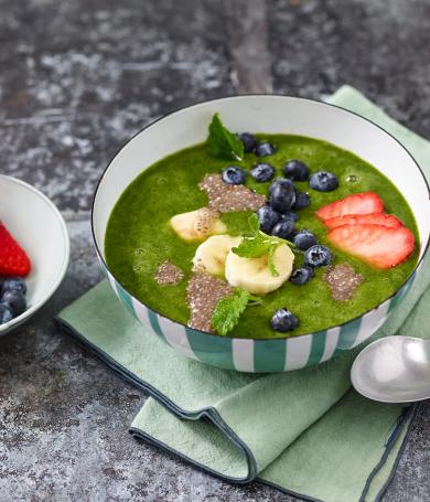 Grüne Smoothie Bowl mit Bananen und Chia-Pudding