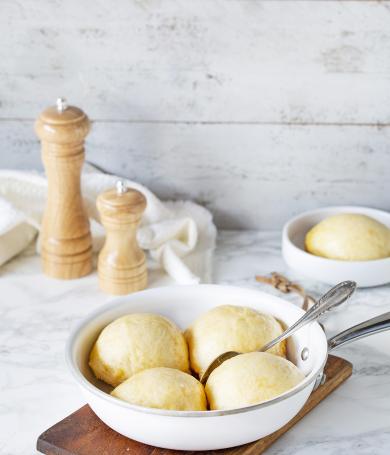 Salzige Dampfnudeln wie du sie in der Pfalz bekommst