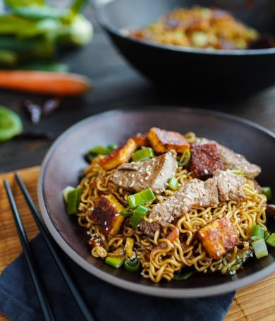 Asiatische Nudelpfanne mit Rinderstreifen
