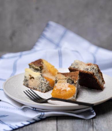 Aprikosen-Quark-Kuchen mit Mohn und Streusel