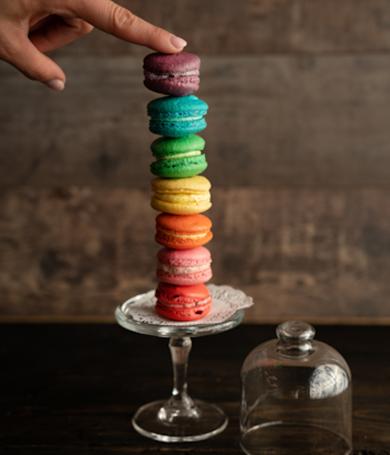Sieben Macaron Füllungen im Regenbogen-Style