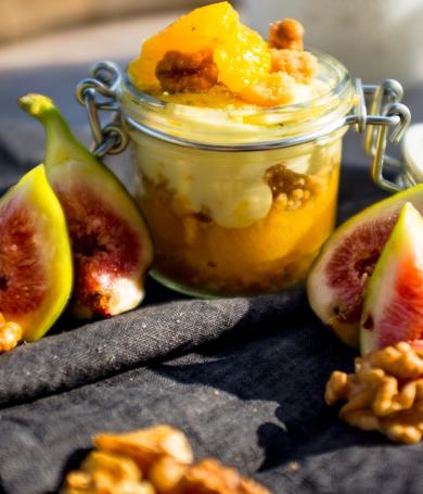 Orangencreme mit Orangenkompott im Glas