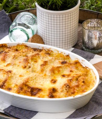 Tomatenauflauf mit Ciabatta und doppelt Käse