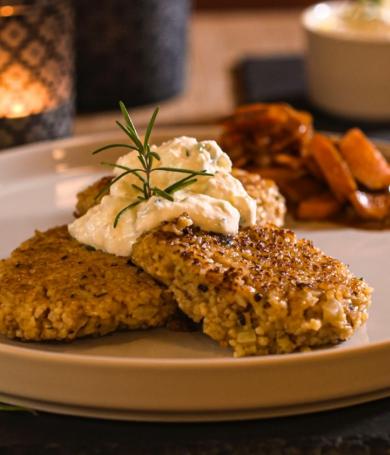 Bulgur-Köfte mit Feta-Dip und Karamell-Möhrchen