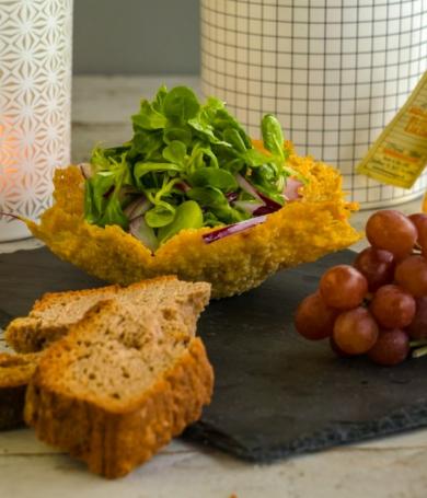 Parmesankörbchen mit Feldsalat