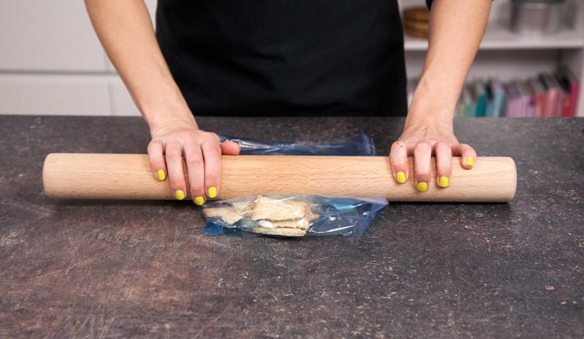 Besonderes Zubehör: Gefrierbeutel, Messer, Schneidebrett, Rührschüssel, Esslöffel, Küchenhandtuch, Nudelholz, Topf, Pinsel, Backpapier, Schneebesen, Alufolie